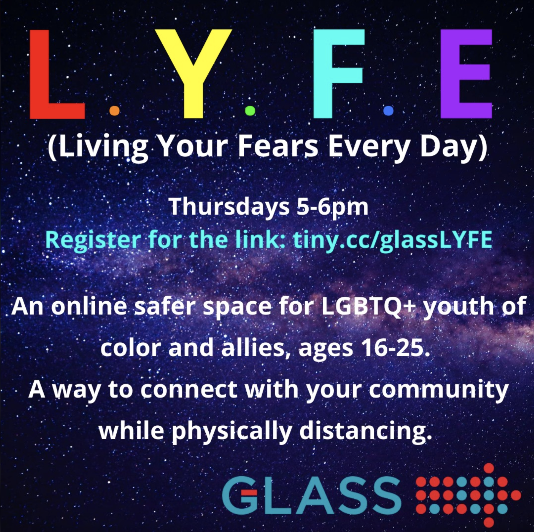 An online safer space for LGBTQ+ youth of color and allies, ages 16-25. A way to connect with your community while staying safe at home.