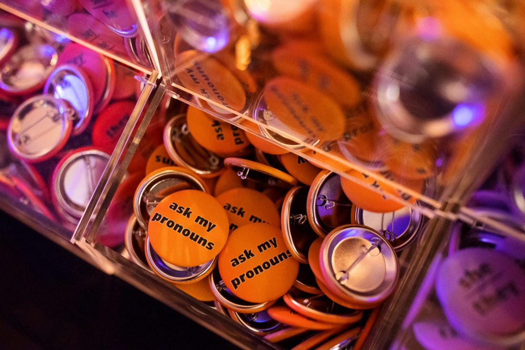 – Add your pronouns to your email signature, your social media accounts , your video chat name (i.e., Zoom ID), and your nametag when you’re at an event.